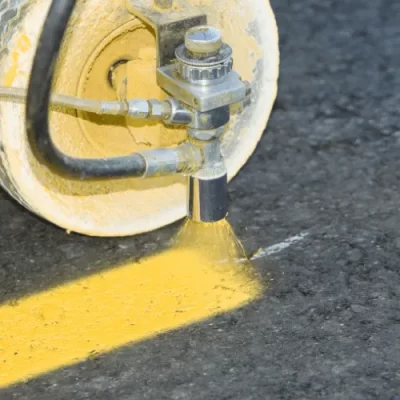 Application of durable and highly visible markings for parking lots, roadways, and athletic courts.